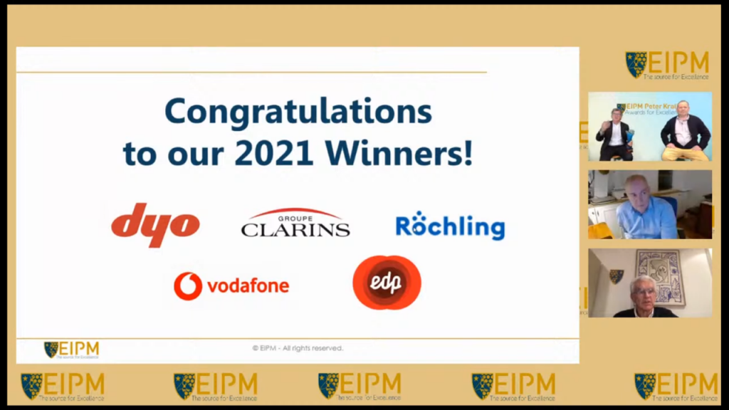 The 12th edition of the EIPM-Peter Kraljic Awards was celebrated on January 12, 2022, at Archamps, in a virtual manner due to the pandemic. The event was piloted from EIPM’s headquarters and involved participants and speakers from all over the world. The use of a streaming platform made it possible for hundreds of people to view the event in real time Among the activities of the evening, we must mention a presentation by Neale O’Connor, Professor at the Monash University on “Sourcing Shift: Managing Supply Chains Across the Regions”, a summary by Hervé Legenvre, PhD director of research and professor at EIPM, on the lessons for the future from this year winners. Last year winner of the “Organisation of the Year Award” Emmanuel Erba, CPO at Capgemini described what are his expectation for future award winners. The event top moment was the presentation of diplomas and trophies to the winners of the 2021 EIPM Peter Kraljic Awards of Excellence. Since 2010 the EIPM-Peter Kraljic Awards recognize purchasing organizations around the world for their exceptional practices and for their exemplary nature. As a result of the pandemic, this year’s process has been adapted both in terms of its perspective, focused on the reactions of purchasing organizations to this crisis and its consequences, and its “contactless” process. The winners are selected by a jury that comprised industry leaders. This is the culmination of a very objective and comprehensive selection process. The companies are selected based on their answers to a based on the EFQM Excellence model, followed for those candidates declared as finalist by the jury, by a validation interview of their practices, carried out exceptionally this year by videoconference. 2021 EIPM Peter Kraljic Awards for Excellence recognize Purchasing organisations that demonstrated outstanding practices and results in the way they managed throughout the current turbulent times and delivered value to their company, their stakeholders, and for the society, with a focus on how these organisations have contributed. In this 2021 edition, the winners were awarded in the following categories: • Collaborative Value Creation • Adaptability and Growth • Sustainability • Innovation & Transformation Leadership • Integration & Resilience Mr. Bernard Gracia, EIPM President, announced the winners and the trophies were presented by Emmanuel Erba, 2020 winner of the “Organisation of the Year Award”. In alphabetical order, the winners of the EIPM Peter Kraljic Awards 2021 are: